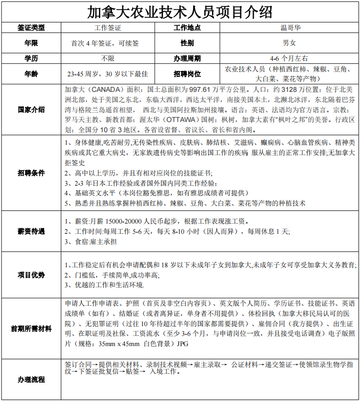 以上是關于加拿大和斯洛伐克的相關項目,有需要的朋友可以隨時咨詢我們呦!